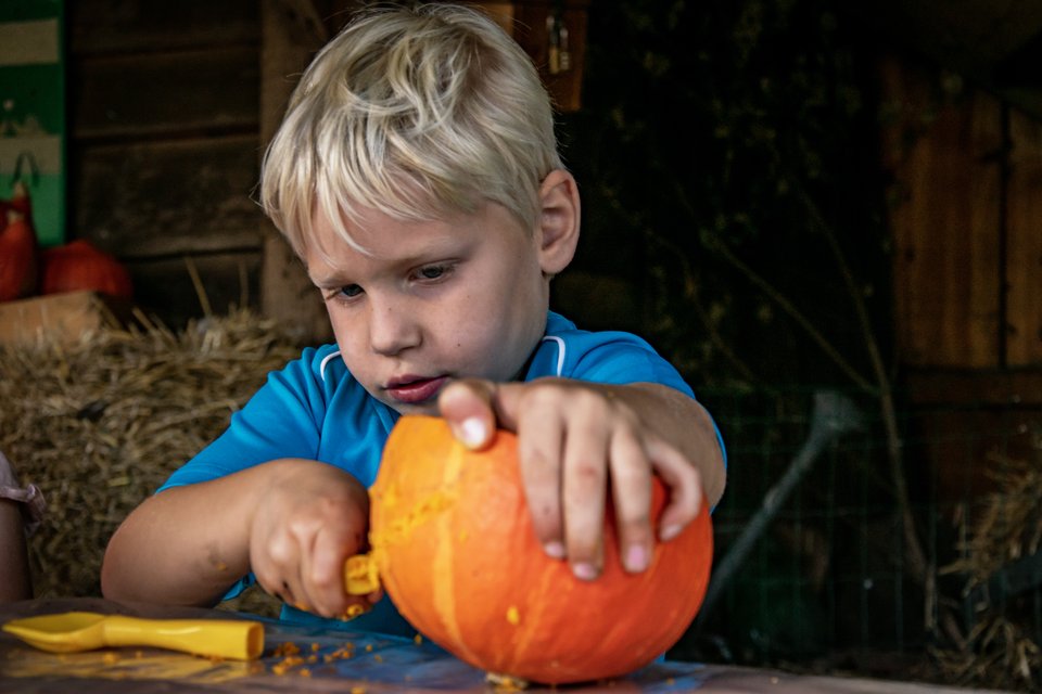 In de geitenschuur hebben wij een speciale pompoenopstelling voor je klaarstaan. Kies een mooie pompoen uit en geef hem een extra Halloweentintje door er een leuk figuur uit te snijden en/ of hem mooi te beschilderen. De geiten in de buurt mekkeren je vrolijk toe en moedigen je creativiteit aan!