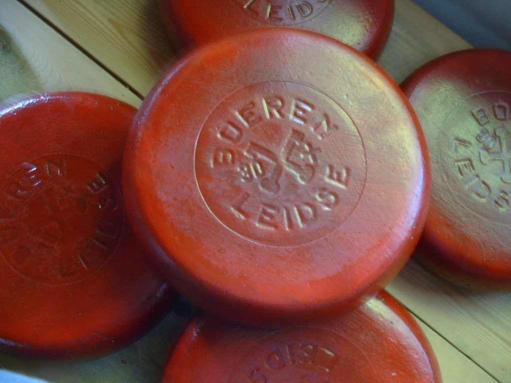 Deze traditionele komijnekaas, herkenbaar aan de roodbruine coating en het reliëf-indrukmerk met de gekruiste sleutels, wordt bereid van afgeroomde melk die overblijft na de bereiding van boter. Omdat deze kaas mager is en komijnzaad bevat, is zij lang houdbaar. In de 17e eeuw ging de Leidse mee op VOC-schepen; als bron van eiwitten voor de bemanning maar ook als ruilmiddel. In tegenstelling tot de volvette Goudse kaas smolt en zweette de Leidse niet in de tropische hitte. Zelfs op de terugweg was deze nog goed te eten. Niet voor niets dus dat de Leidse eeuwenlang de belangrijkste kaas van Nederland was! Nu zijn er nog slechts zeven boerderijen rondom Leiden die de ‘sleutels’ in de kaas mogen drukken. Zo zetten zij deze heerlijke traditie uit de tijd van de VOC voort.